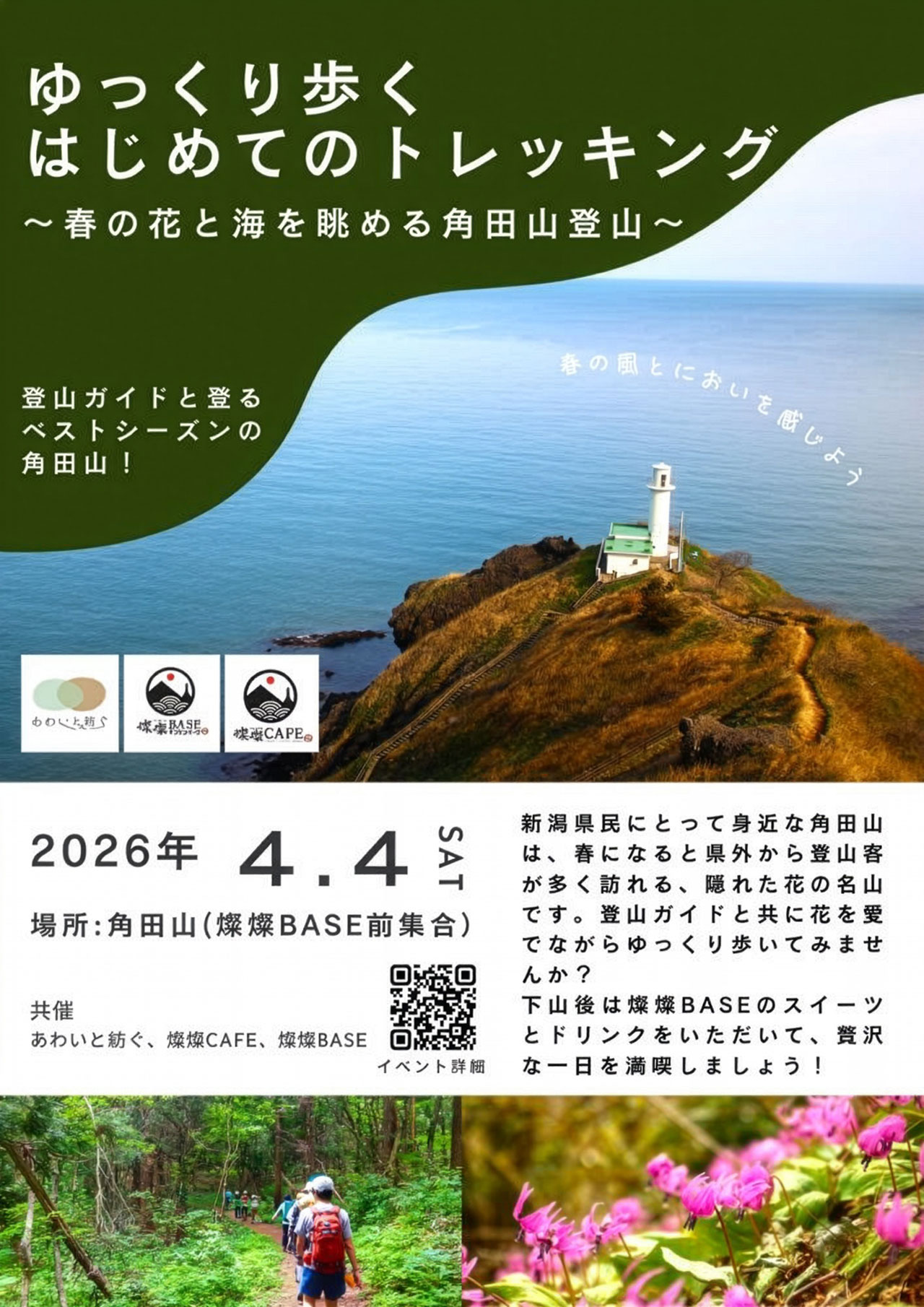 トレッキングツアー「ゆっくり歩く はじめてのトレッキング ~春の花と海を眺める角田山登山~」開催